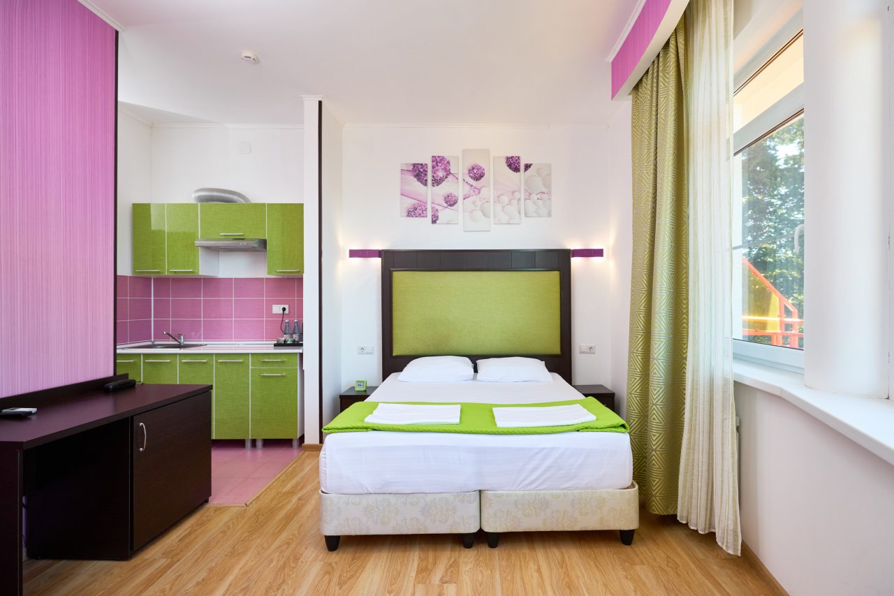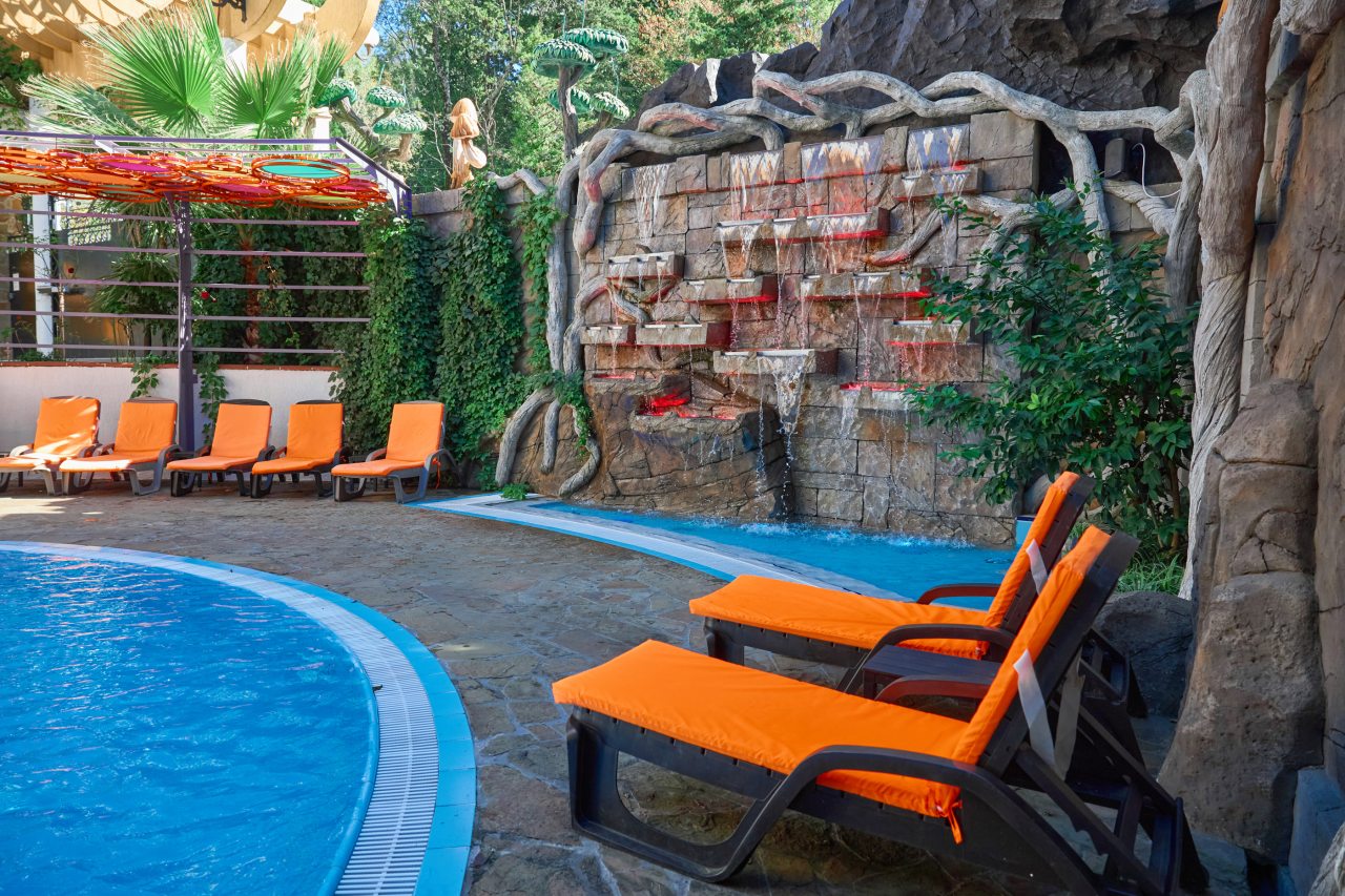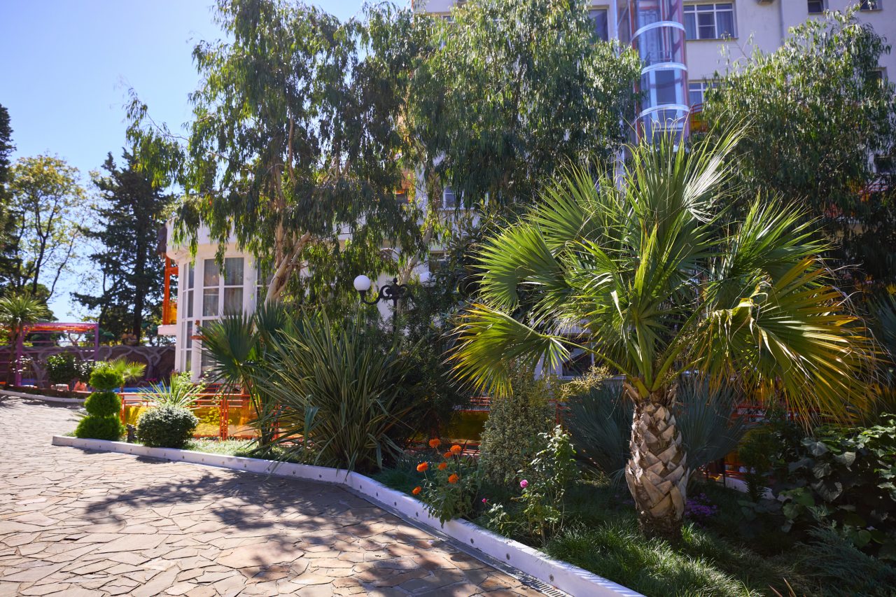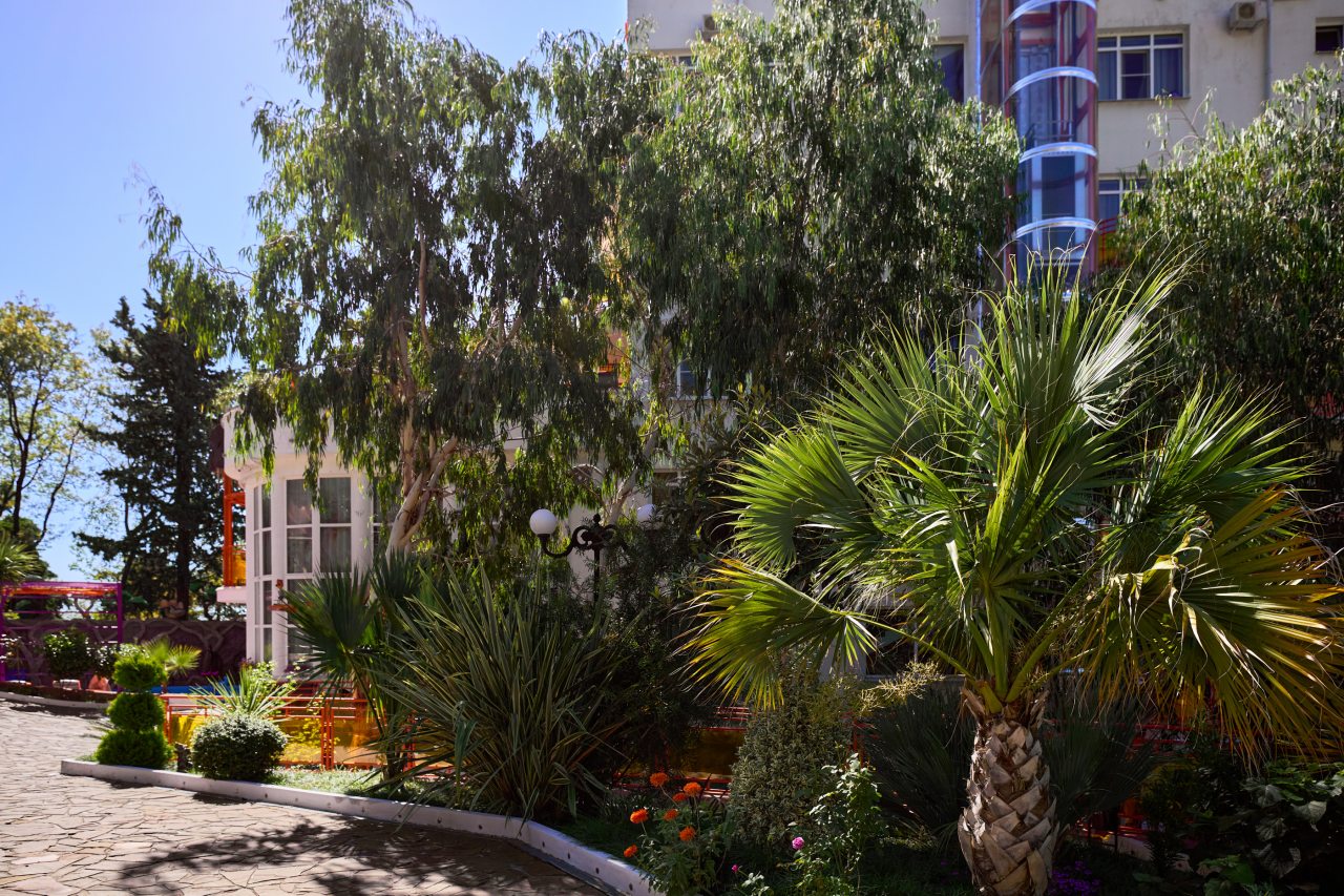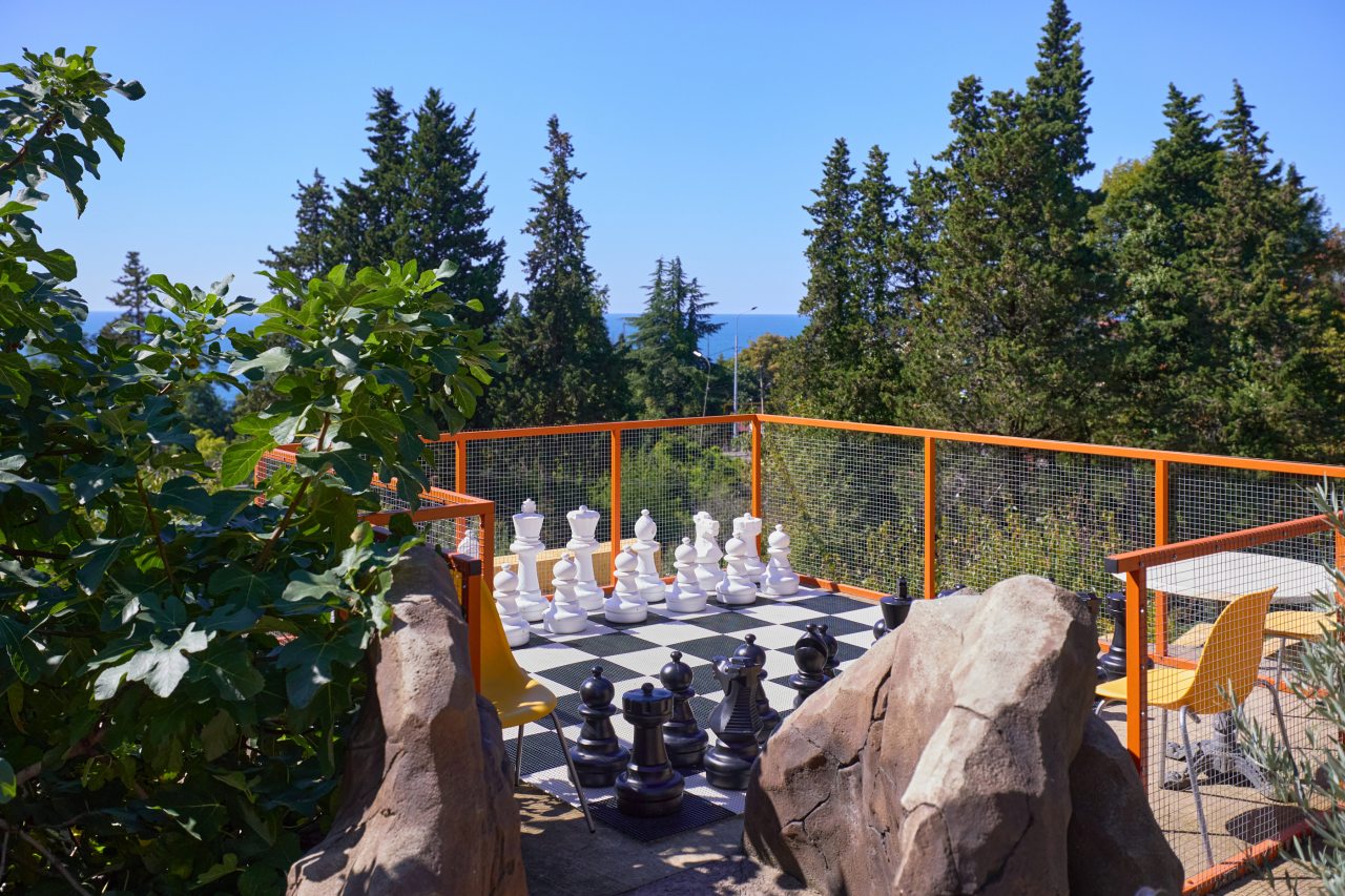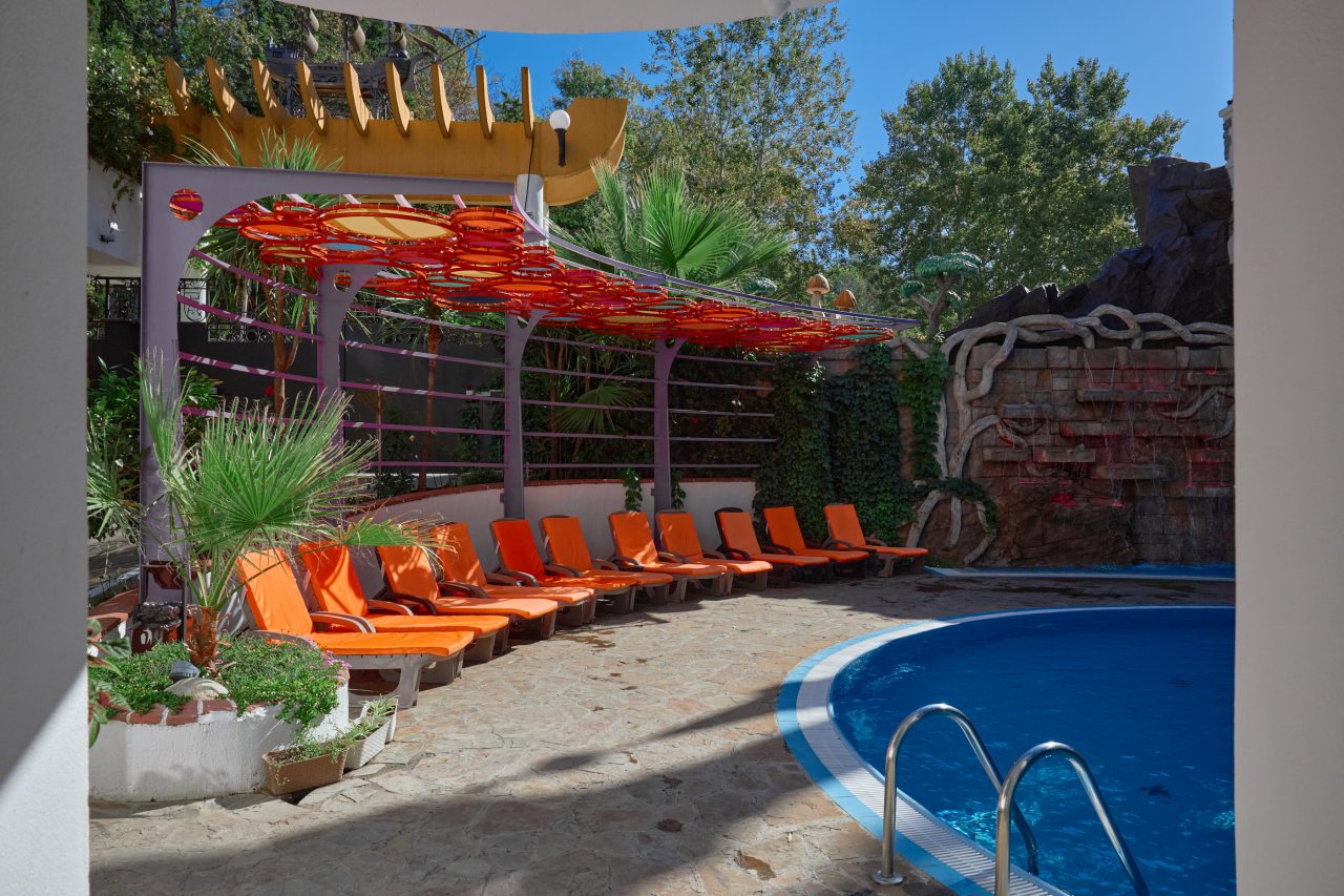 В этом году отдыхали в Сочи, и забронировали оригинальный отель в Якорной щели. Находится он в двух шагах от моря, и достоин прицельного внимания. Территория очень красивая, много декора, светящегося в темноте. Есть огромный бассейн на территории, лежаки. Номеров тоже достаточно, мы свой бронировали задолго до заезда. В нашем двухместном стандарте была предусмотрена даже небольшая зона кухни. Кровать большая с отличным матрасом. Можно и отдыхать, и кушать готовить. На территории функционирует и кафе с системой шведский стол. В общем все условия!