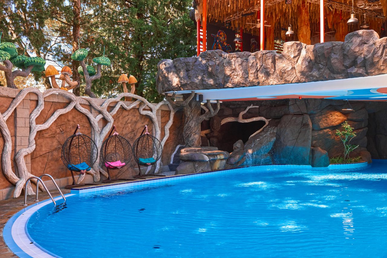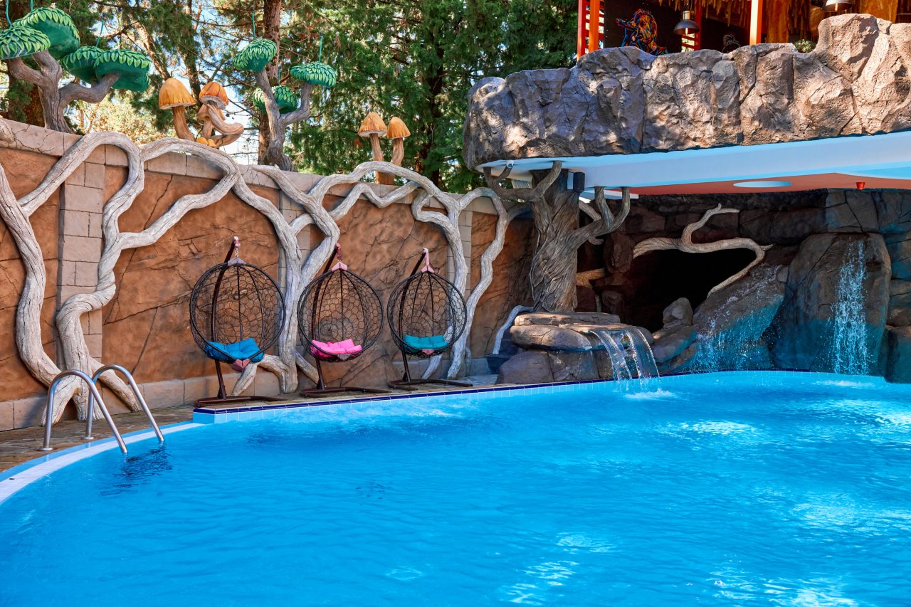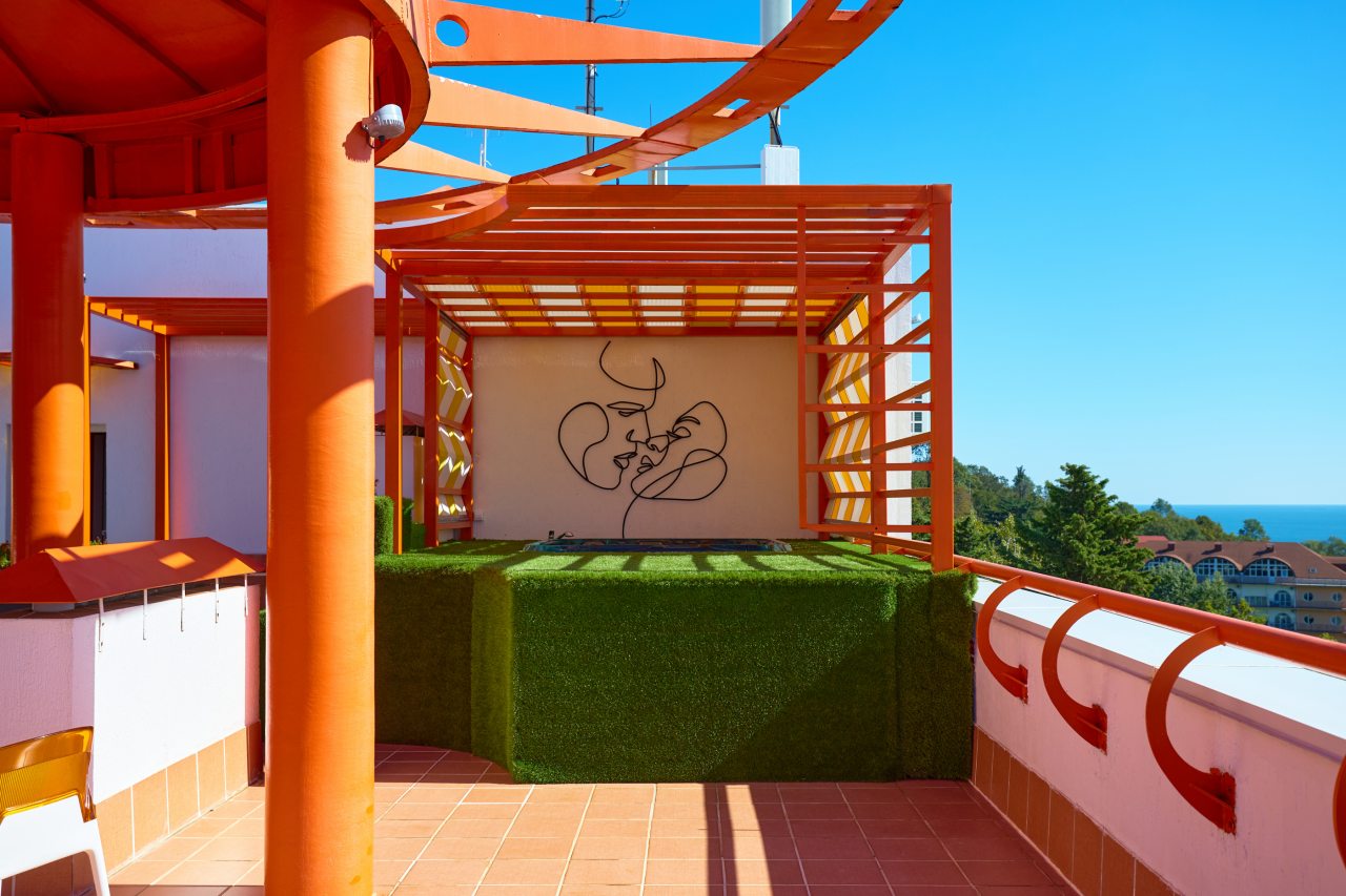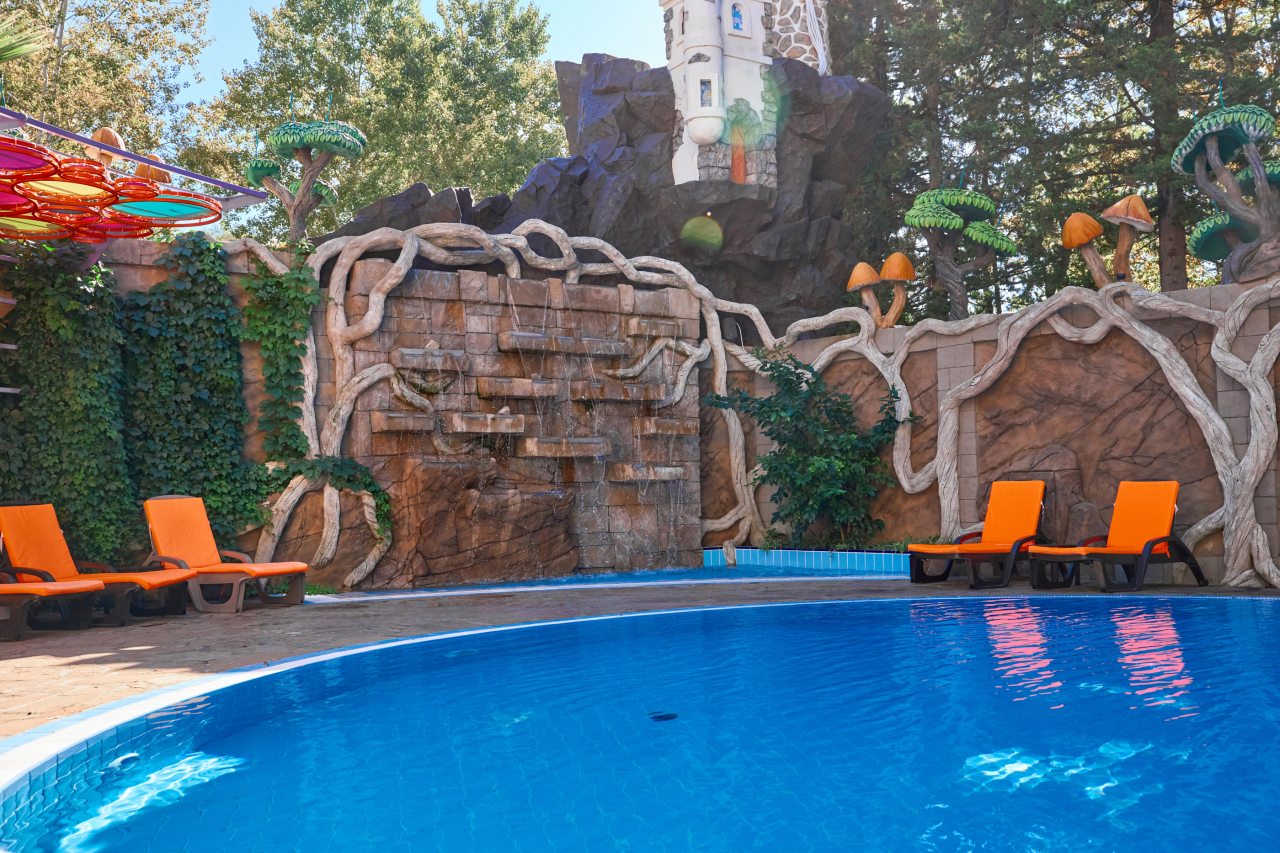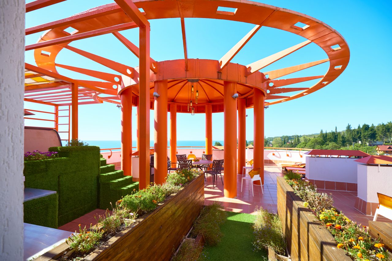 В этом году отдыхали в Сочи, и забронировали оригинальный отель в Якорной щели. Находится он в двух шагах от моря, и достоин прицельного внимания. Территория очень красивая, много декора, светящегося в темноте. Есть огромный бассейн на территории, лежаки. Номеров тоже достаточно, мы свой бронировали задолго до заезда. В нашем двухместном стандарте была предусмотрена даже небольшая зона кухни. Кровать большая с отличным матрасом. Можно и отдыхать, и кушать готовить. На территории функционирует и кафе с системой шведский стол. В общем все условия!