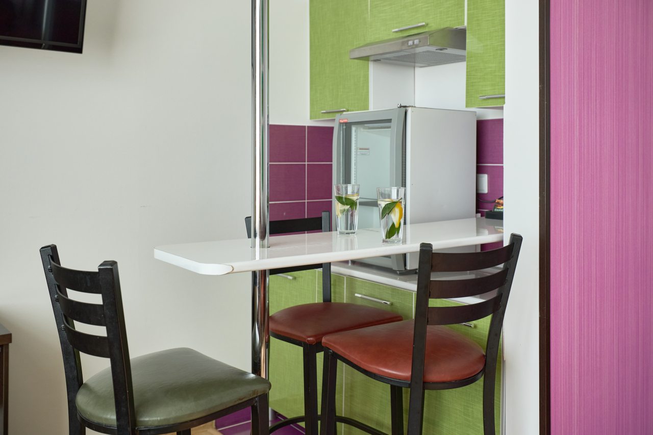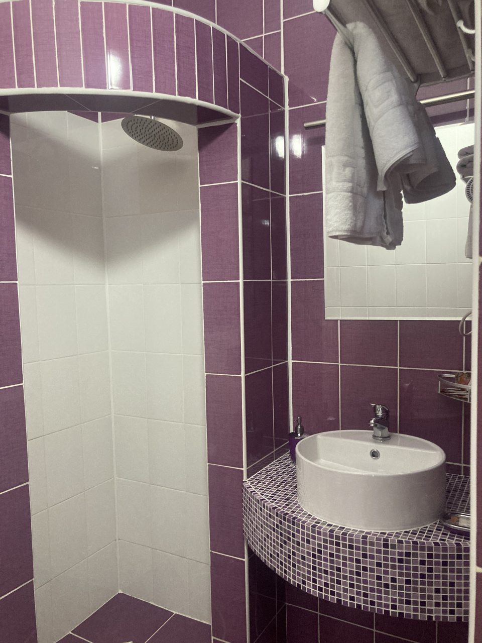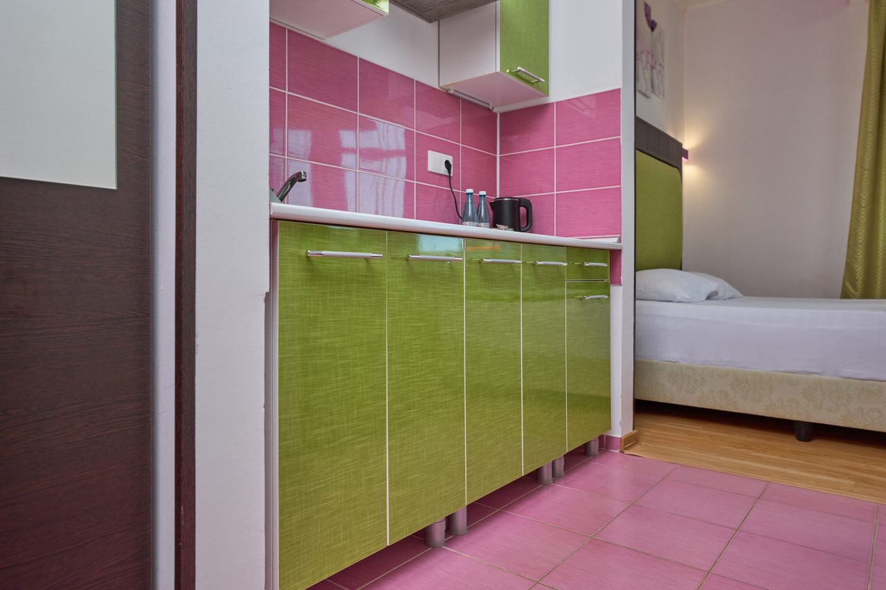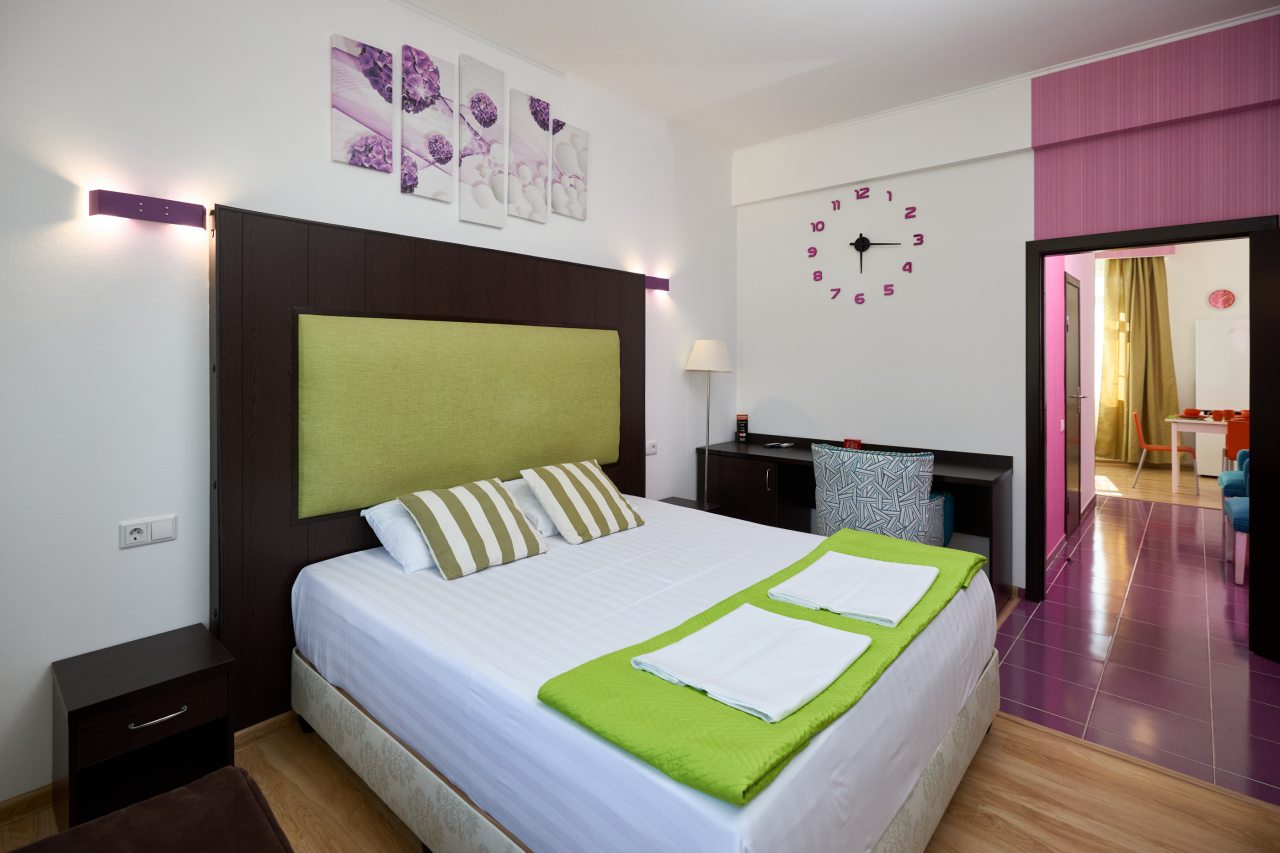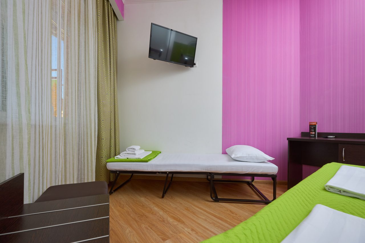 Бронировал одноместный номер в очень красочном отеле. Номер довольно интересный. Приятные глазу цвета в интерьере присутствуют. Спальное место и кухонная зона в одной комнате. Ванная комната хороша, из душа идет сразу теплая вода с отличным напором.