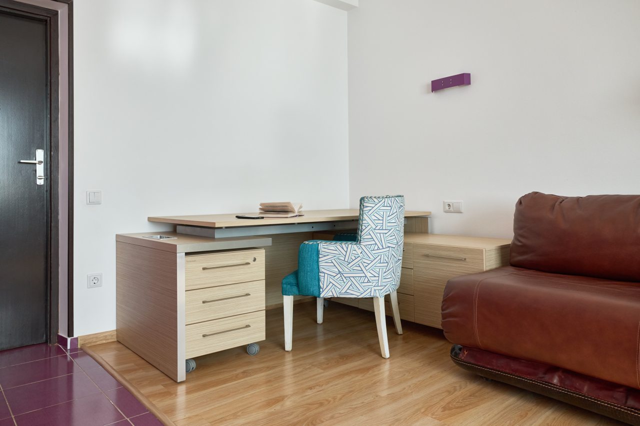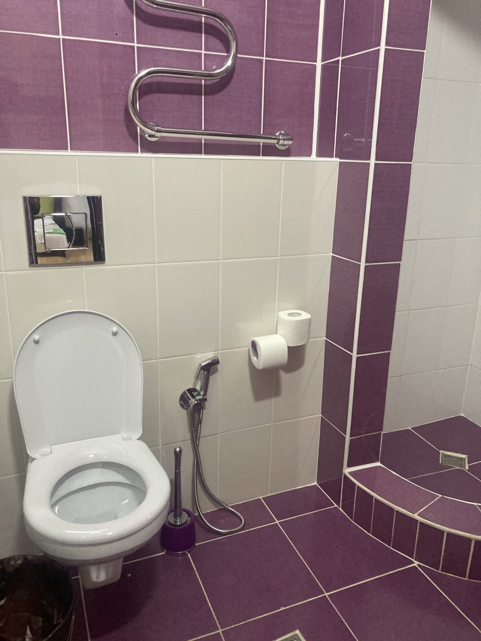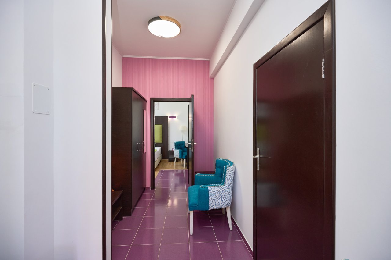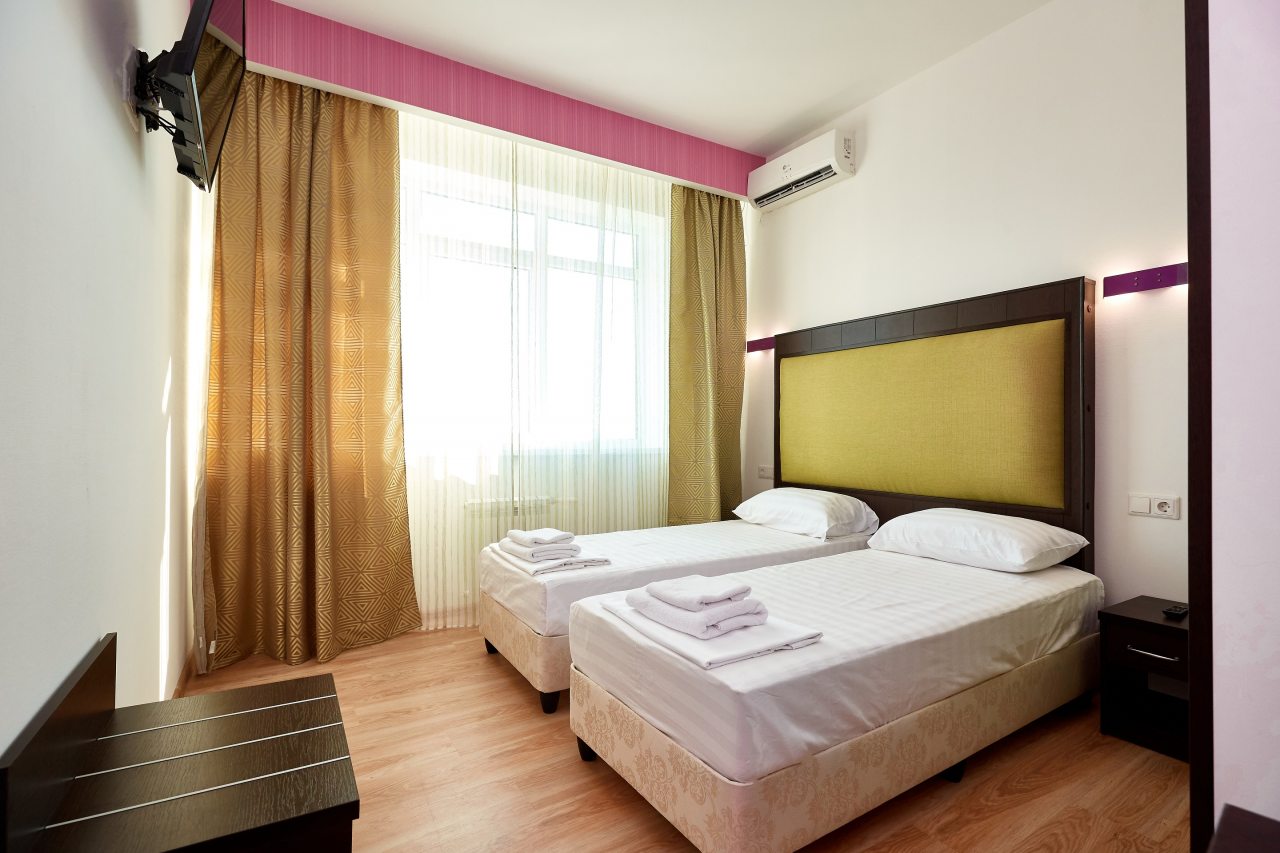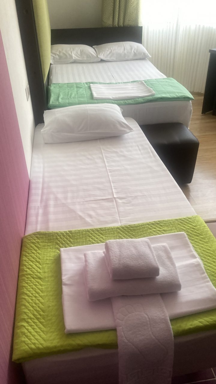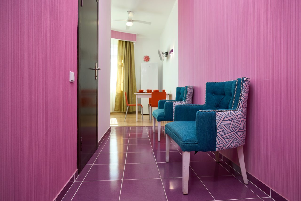 Бронировал одноместный номер в очень красочном отеле. Номер довольно интересный. Приятные глазу цвета в интерьере присутствуют. Спальное место и кухонная зона в одной комнате. Ванная комната хороша, из душа идет сразу теплая вода с отличным напором.