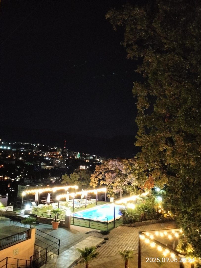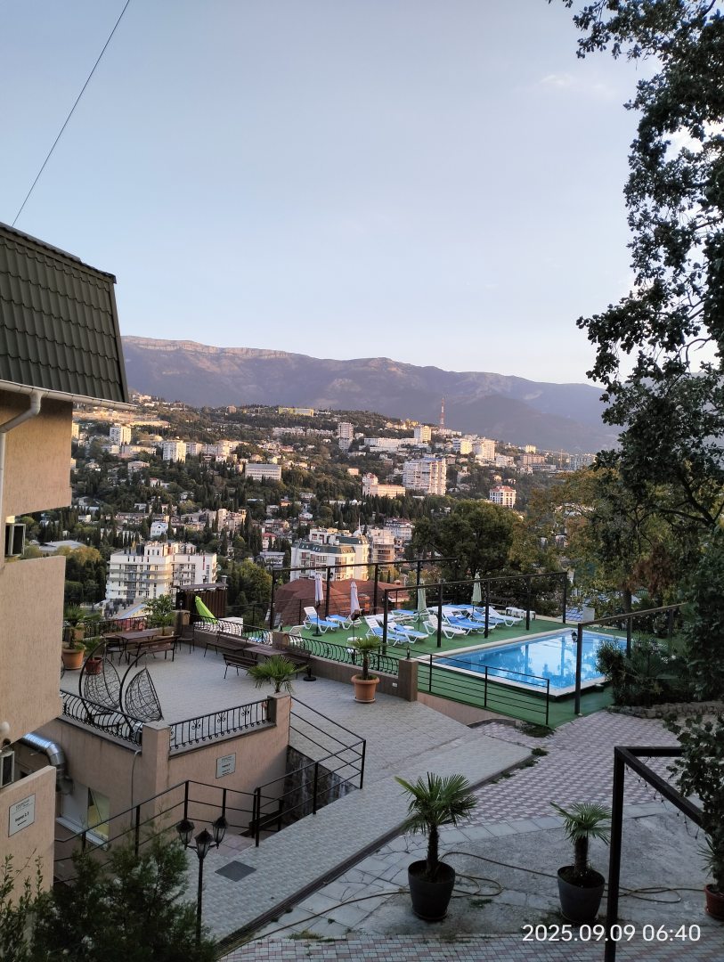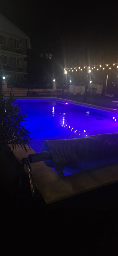 Бассейн с подогревом, очень понравился, очень чистый. А вид с балкона на очень красивые горы!!! До моря с горки 10 минут пешком, но есть авто, которое вам доставит туда за пару минут и заберёт обратно.