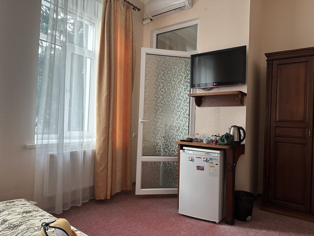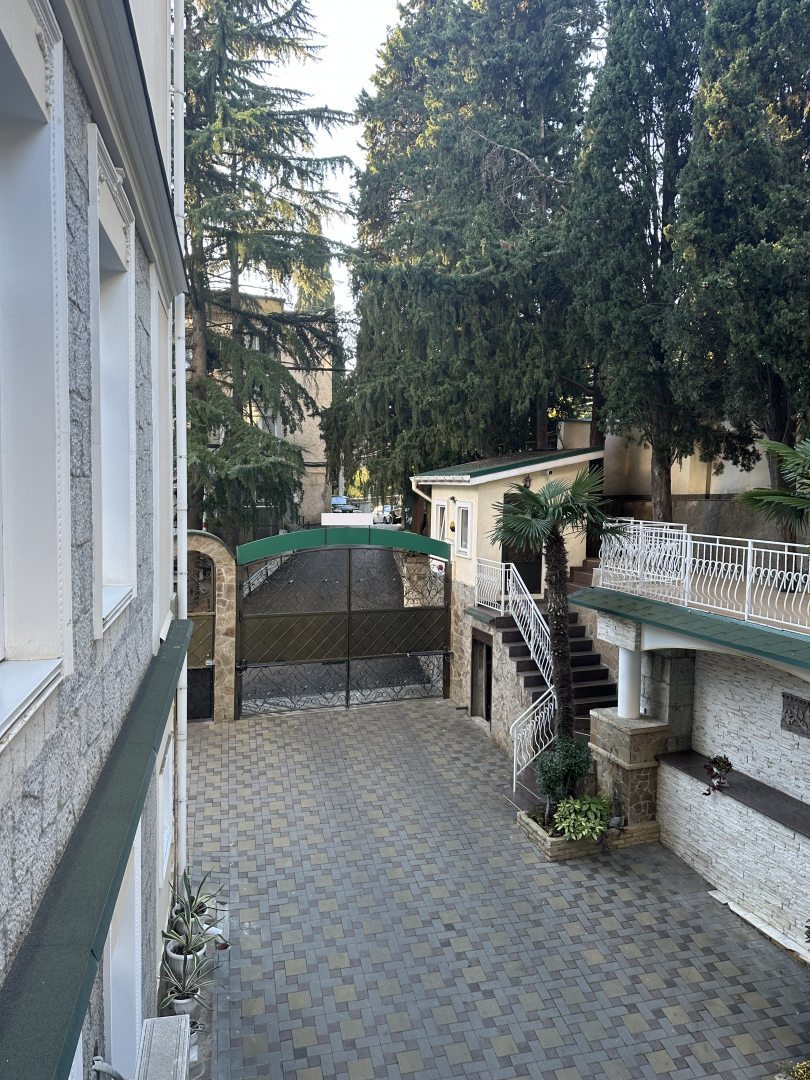 Останавливались в этом отеле в ноябре 2025 года. Был большой номер с комнатой, в которой был совмещенный унитаз и ванна. Из этой ванной был выход на маленький балкончик со столиком и стульями с видом на въездные ворота. При заезде в качестве комплимента-вода и чай. Потом можно было чай взять за завтраком. На пятом этаже большая терраса с видом на море и город. В отеле есть парковка-500,00 рублей в сутки. Так как рядом на улице припарковаться проблемно, то парковка очень выручала. Так как мы жили 3 ночи, то у нас в стоимость входило посещение крытого бассейна, сауна и хамам. Сотрудник отеля, Анна, всегда была на связи и очень дружелюбная. Завтраки очень разнообразные: каши, молочные и мясные продукты, сыр и прочее. В пешей доступности (10-15 минут) набережная, остановка общественного транспорта, парк. В отеле можно приобрести разнообразные экскурсии по достопримечательностям Ялты и пригородным паркам, дворцам, в Никитский ботанический сад. Рекомендую этот отель.