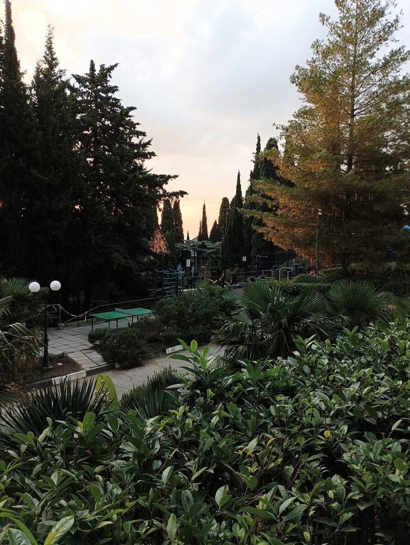 Ностальгическое место с ухоженной территорией и морским воздухом. Отличный санаторий, где можно не только отдохнуть, но и подлечиться. Процедуры грамотные, персонал в медблоке заботливый. Вид на море и пальмы добавляет настроения. Номера простые, но светлые и чистые. Очень понравились прогулки по парку — тень, лавочки, певчие птицы. Кормят по-домашнему, вкусно.