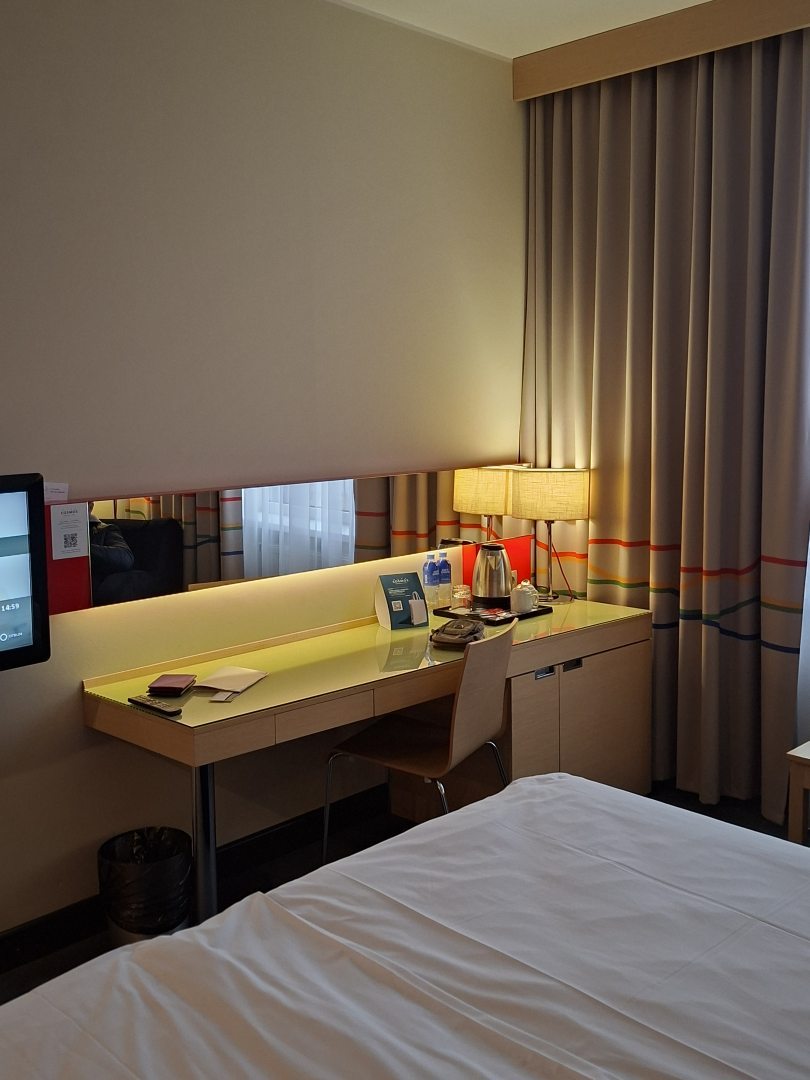 Номер был идеально чистый при въезде, даже пылинки нигде не было. Кровать с удобным матрасом и свежим комплектом постельного белья. Еда в приотельном ресторане на достойном уровне.