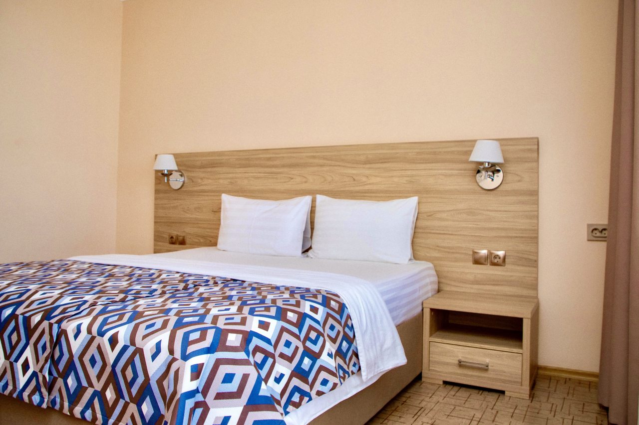 Отель расположен на набережной. В 2 шагах есть всё и для всех (мини-рынок, продуктовый магазин, аптека, столовые, кафе, дельфинарий, дендрарий, океанариум, парк с аттракционами, развлечения для детей, море, пляж...). В номере чисто, есть всё необходимое, даже бассейн на территории с лежаками, просторный балкон, чуть дальше парковка для гостей отеля. Мы с мужем остались очень довольны. Ранее фото не загрузилось к отзыву