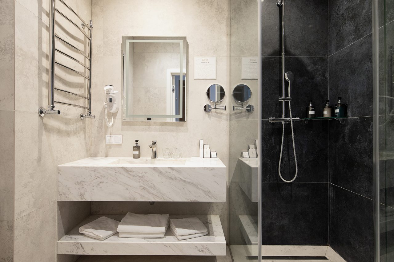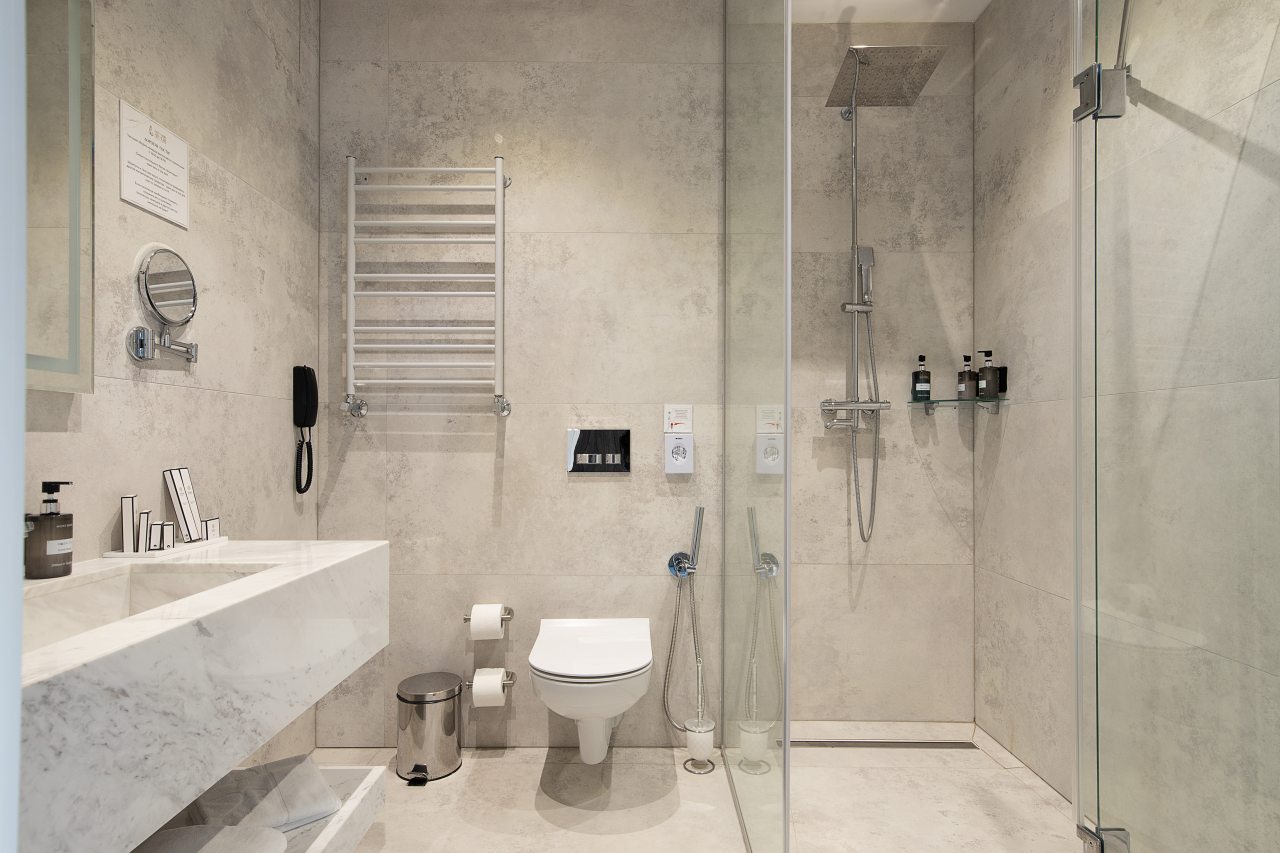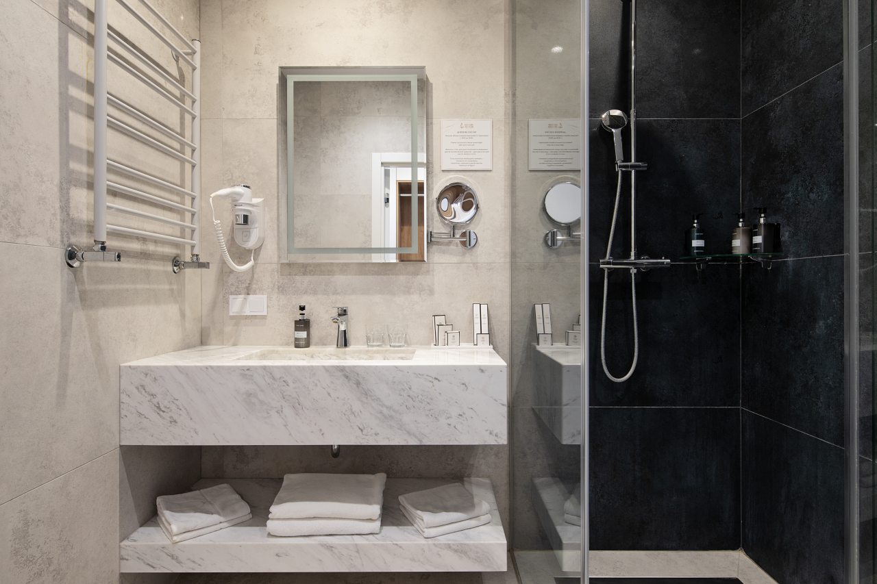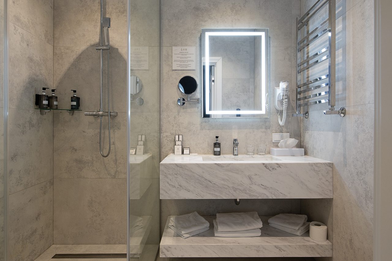 В ванной все необходимое: зубные щетки, бритвенный и косметический набор, шампуни с классными ароматами