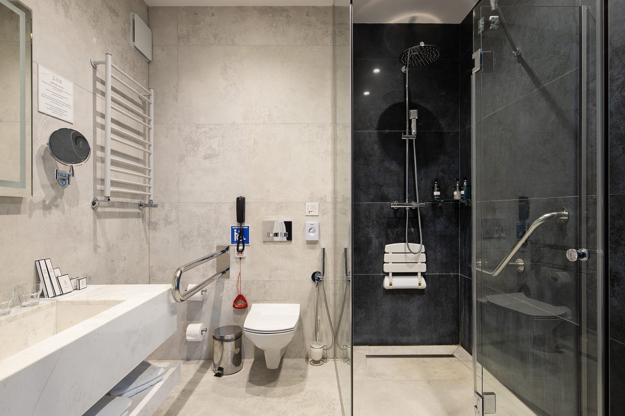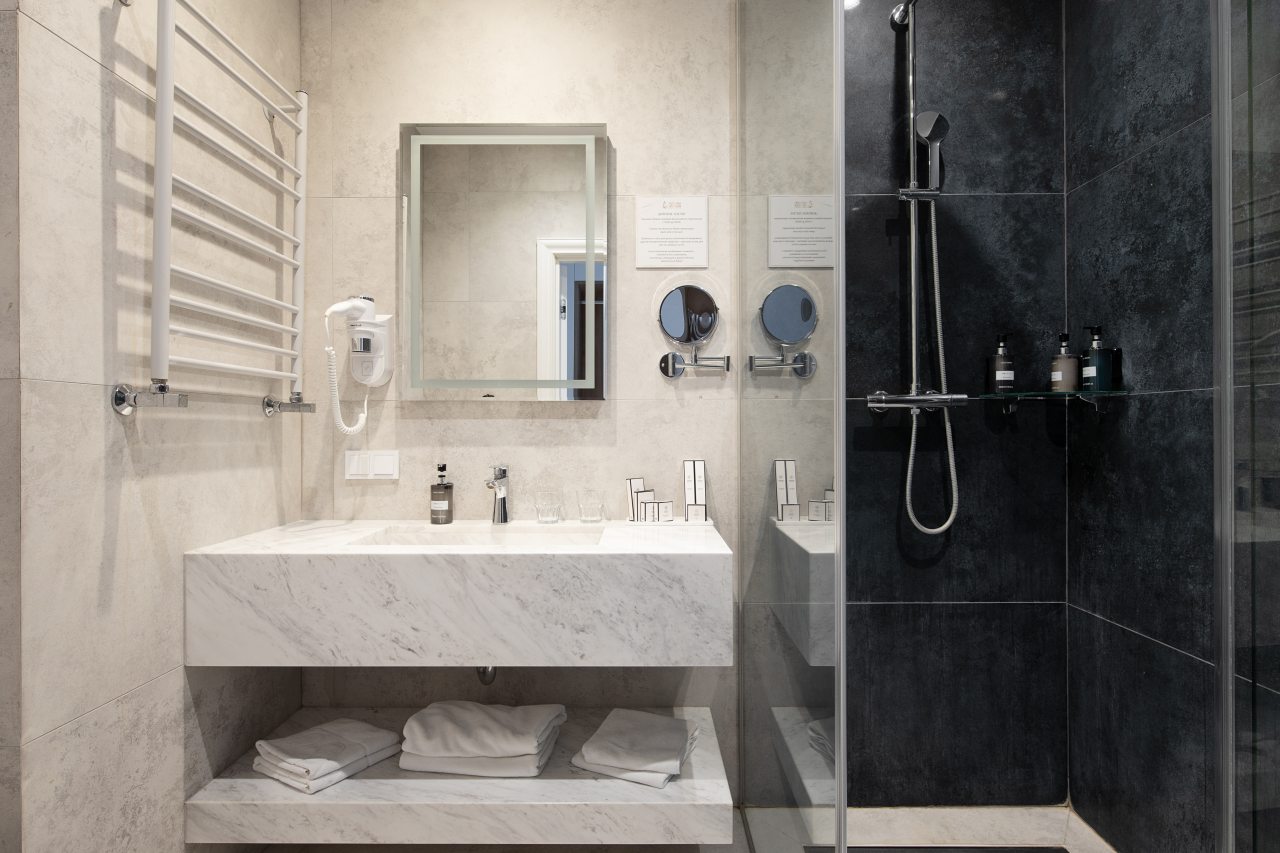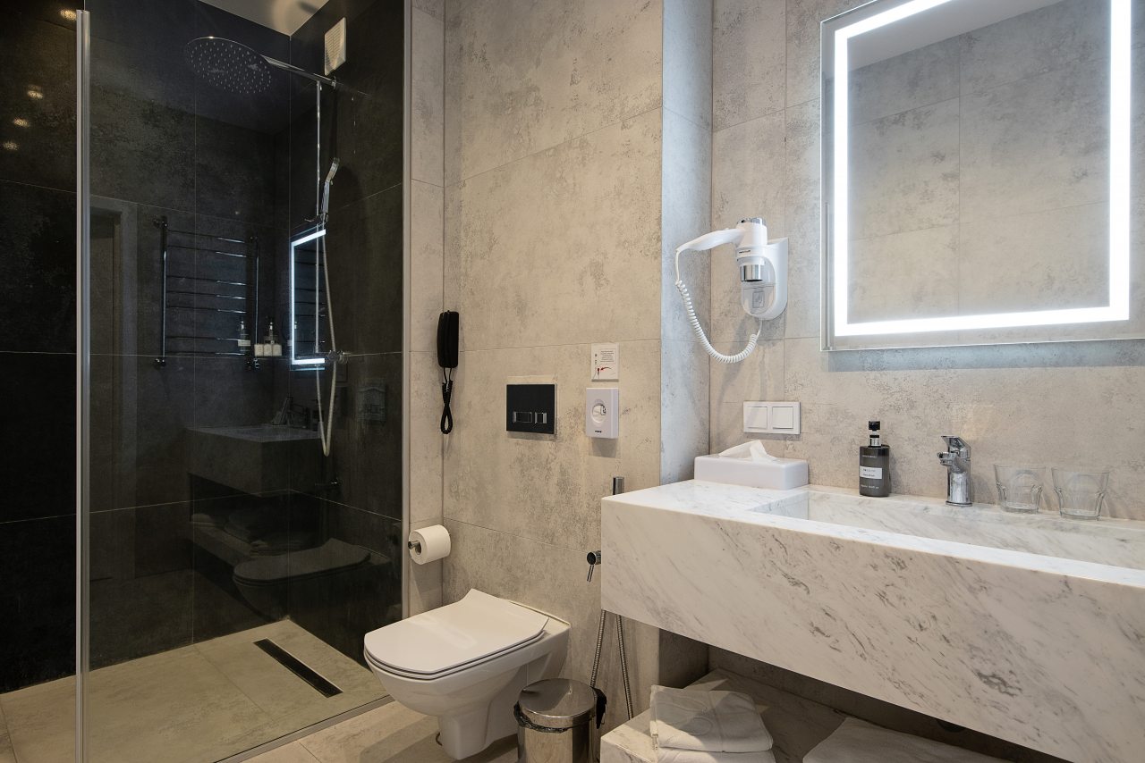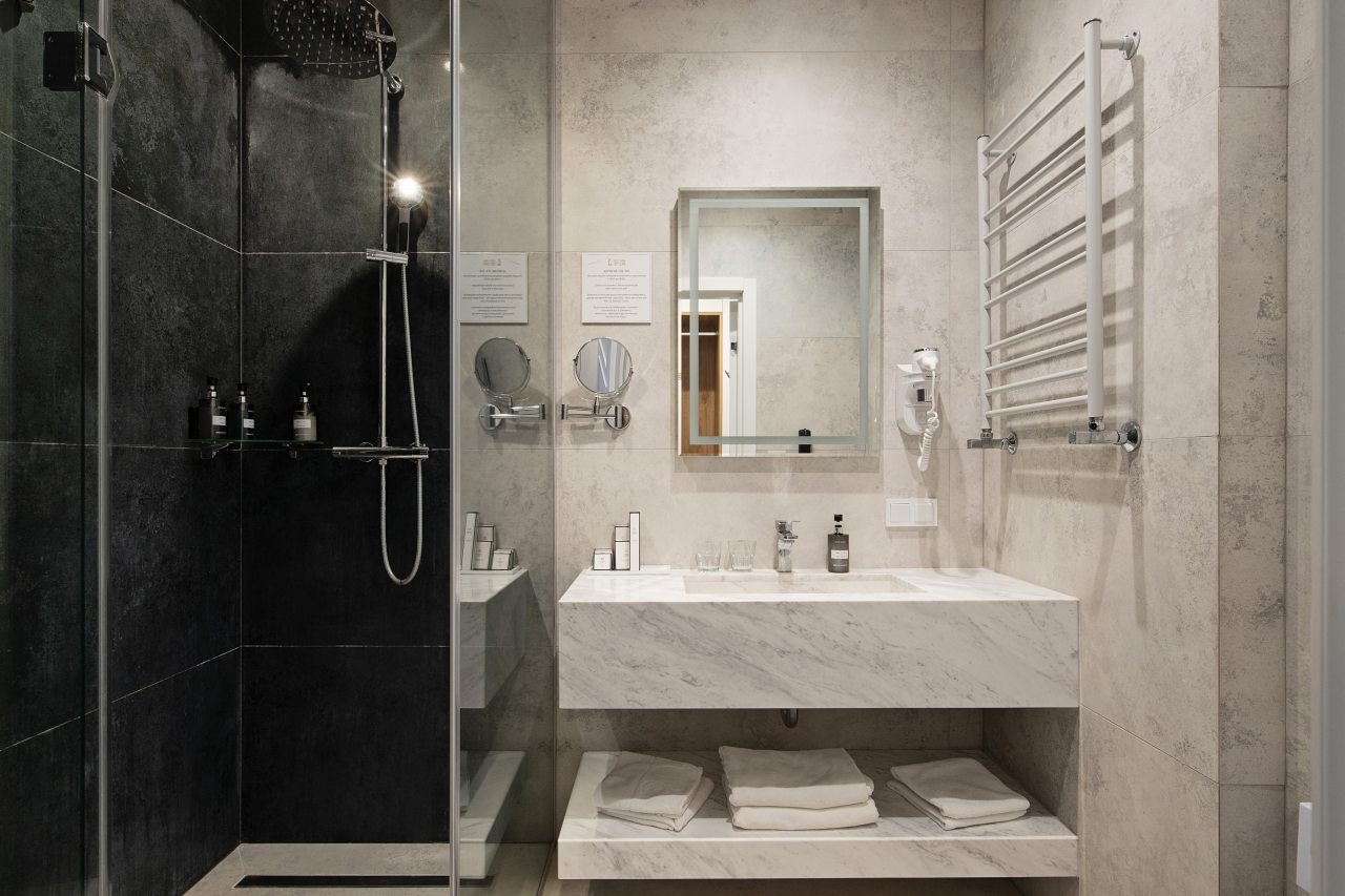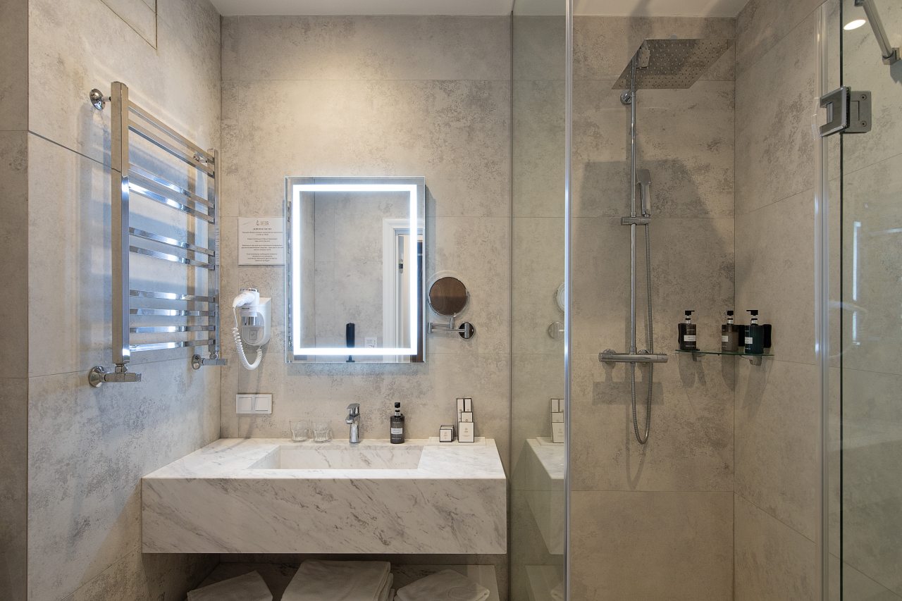 В ванной все необходимое: зубные щетки, бритвенный и косметический набор, шампуни с классными ароматами