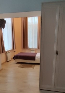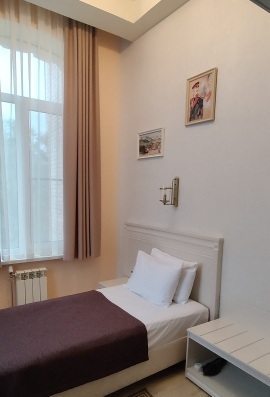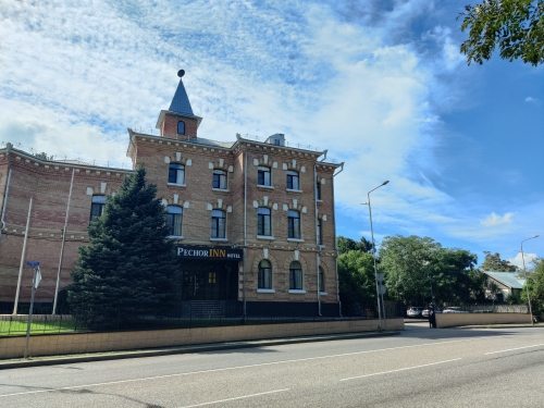 Отель симпатичный и снаружи и внутри, на этаже кулер с водой, уборка осуществлялась незаметно, пока вы завтракаете. У меня был одноместный номер с односпальной кроватью. Матрас мягкий, две подушки. Есть небольшой , но вместительный шкаф, в нем сейф на ключе, три вешалки, много полок стол с холодильником под ним, табурет, прихожая с зеркалом в полный рост. Расположение отеля очень удобное - до аэропорта около 20 минут, в шаговой доступности от старинного вокзала ( поездов мне не было слышно), рядом в 5 минутах один из входов в парк , в 10 минутах - вход по центральной лестнице в парк. Рядом потрясающей красоты Островские ванны, интересное здание суда, до водо- и грязелечебницы 16-20 минут спокойным ходом. Рядом с отелем есть кафе "Pizza", где можно поужинать, возвращаясь с прогулок. Очень неплохие блюда из мяса, рыбы ( вкусная форель и семга), курицы и морепродуктов ( к мидиям вопросики)), конечно, паста и пицца всех мастей, есть несколько первых блюд - прекрасная солянка , кажется 360 рублей.