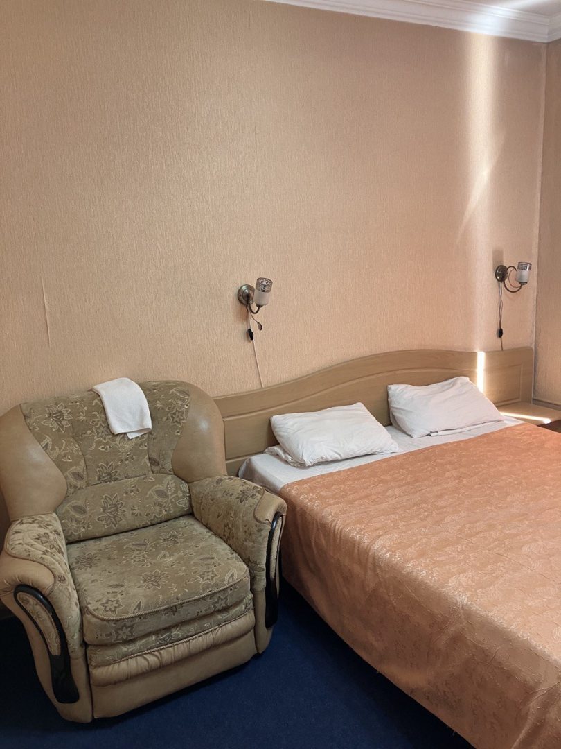Людмила 6 Сент 2025 Все отзывы об этом отеле10 ВеликолепноСоответствие цены и качества. Удобное расположение, рядом с вокзалом, ночью поездов нет поэтому объявления на вокзале не мешали. Брали завтрак, вкусно и разнообразно. Есть бассейн, небольшой, но вполне достаточно для расслабления, вокруг бассейна стоят лежаки. За отдельную плату есть баня, те кто брал - очень хвалили. В целом отель понравился.Отсутствие кондиционера, стоял вентилятор, но номер у нас был самый дешёвый, в других не знаю. Зубная щётка и паста за отдельную плату, мыло, гель для душа и шампунь включены в стоимость
