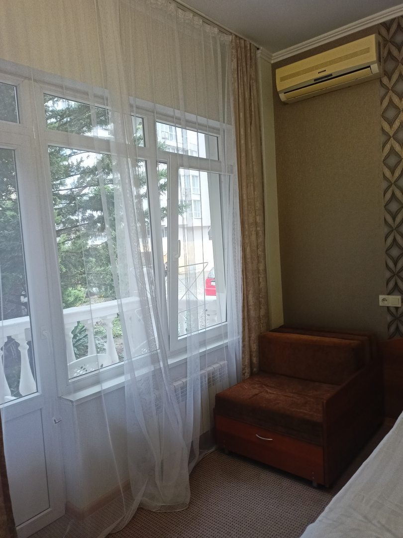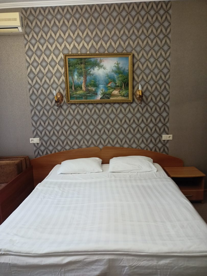 Дмитрий 16 Нояб 2025 Все отзывы об этом отеле10 ВеликолепноЗамечательный отельПроживали в корпусе С 101 номер на 1 этаже с балконом, вид на мини зоодворик, детская площадка рядом, стоянка. Номер просторный. Мебель немного устаревшая, но ремонт свежий, все чисто. Кровать с удобным матрасом, с двух сторон кровати розетки, что очень удобно и бра. Полотенца меняли почти каждый день, так как полотенцесушителя не хватало в такую погоду. Обслуживающий персонал очень вежливый, отзывчивый. У нас не работал кондиционер на обогрев, обратились к администратору, решили вопрос в течении часа. Очень понравился бассейн с подогревом, нас это спасло, так как в середине октября погода была дождливой, а хотелось ещё поплавать и мы плавали даже под дождём. Месторасположение отеля очень удобное, недалеко продмагазины, кафе. У отеля есть камера хранения для вещей, что очень удобно при позднем выезде из отеля, также на территории рядом с бассейном есть душ и туалет.На этаже кулер с водой закончился на второй день нашего проживания, его так и не заменили в течении 2-х суток.