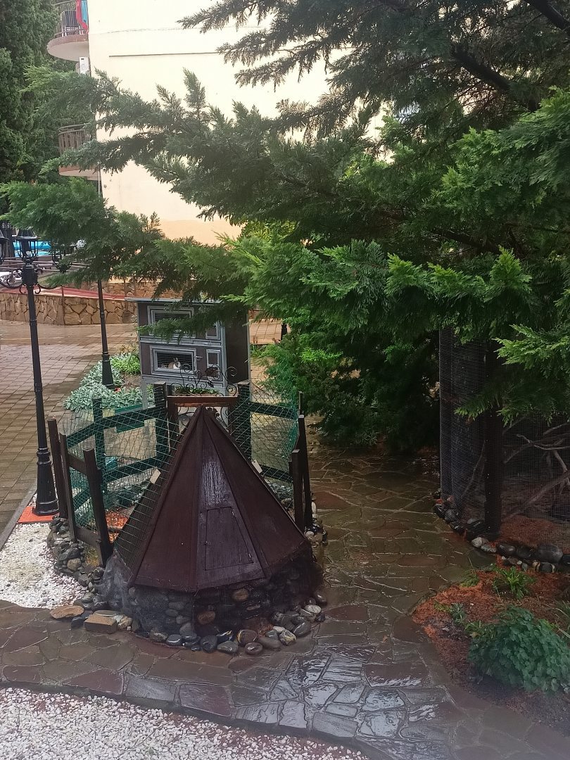 Екатерина 16 Нояб 2025 Все отзывы об этом отеле9.5 ВеликолепноПриятный аромат сосен и белкиПроживали 3 дня, приехали поздно, около часа ночи, территория закрытая, но на калитке написан номер тел, набрав номер нам открыли в течении 5 минут! Номер хороший, кровать удобная. Пахнет соснами. Есть общая кухня со всей необходимой посудой, можно завтракать как в Холе (оборудованно) или в беседке на улице (есть мангал). На территории бассейн с теплой водой , баня (за доп плату), белок много. Парковка (за доп плату), мы ставили машину в доль дороги, провода накапало смолы на машину. Детская площадка ( удобно, так как территория закрыта). Нам прям понравилось, хотели продлить, но все номера были занятыЯвных минусов не заметили