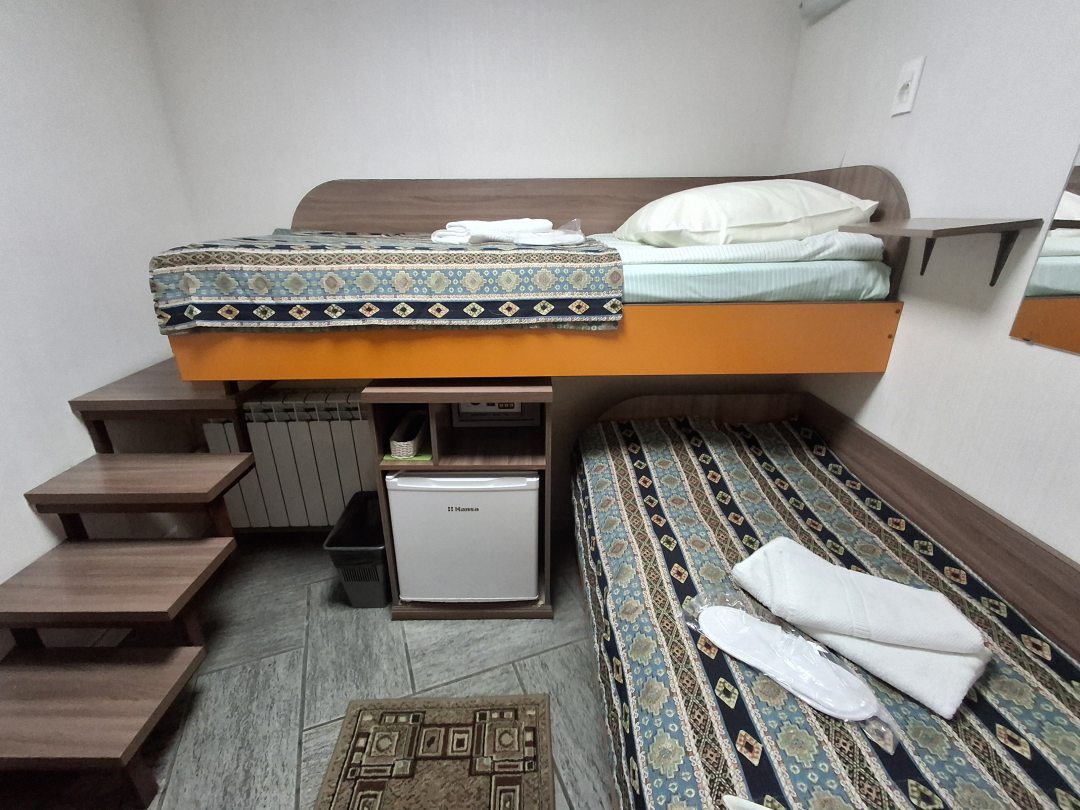 Светлана 4 Нояб 2025 Все отзывы об этом отеле9.5 ВеликолепноРасположение отеля удобное, рядом много мест где поесть, в номере чисто, кровать удобная. Слышимость конечно «прекрасная», хотя нам повезло, было тихо (только рано утром кто-то матерился громко, но недолго ). Чайник, чай, мини холодильник естьНомер конечно же небольшой, для того чтобы переночевать все прекрасно. Из небольших минусов- нет шапочки для душа, нет стульев (скоро принесут завтрак, есть придется на кровати)