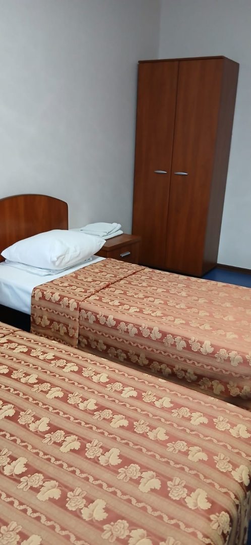 Сергей 1 Нояб 2025 Все отзывы об этом отеле9.4 Очень хорошоНедорого, но не сердитоУдобное расположение: Рядом магазин Чижик, боулинг, бильярд, ночной клуб, продаются напитки на рецепшине. Бесплатно тапочки, чай с сахаром, одноразовые шампунь, гель для душа, зубная щётка, паста. Фен, телевизор, чайник.Номера изношены от времени и требуется ремонт. Полотенца чистые, их много, но застираные по миллиону раз, давно пора заменить, потому что пользоваться не приятно. Телевизоры в номерах разные, старые. Антенна не ловит ничего кроме первого канала, смотреть с такими помехами невозможно!