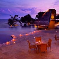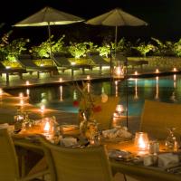 Возможна сервировка трапезы у бассейна или в комфортабельных виллах.