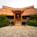 Виллы курортного отеля Eskaya с бамбуковыми крышами и просторной планировкой обставлены деревянной мебелью и оборудованы кондиционером.