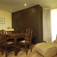 Апартаменты с раздвижными стеклянными дверями, обеспечивающими прекрасное естественное освещение, обставлены деревянной мебелью в классическом стиле.