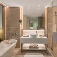 В собственной ванной комнате с ванной и биде имеются халаты, тапочки, бесплатные туалетно-косметические принадлежности и фен.