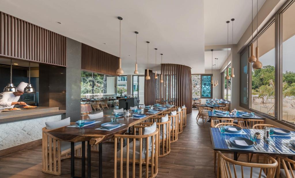 В ресторане с обслуживанием по меню или по системе «шведский стол» подают блюда азиатской и интернациональной кухни, а также блюда из морепродуктов.