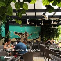 В кафе Laguna подают современные блюда азиатской кухни, а в кафе Monterey и ресторане Infinity — блюда интернациональной кухни.