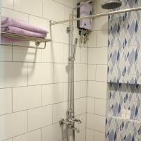 В собственной ванной комнате с душем предоставляются полотенца и бесплатные туалетно-косметические принадлежности.