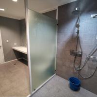 Собственная ванная комната с душем укомплектована бесплатными туалетно-косметическими принадлежностями.