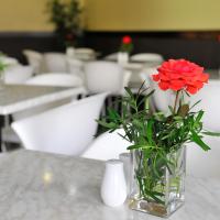 Его гостям предлагается размещение в лаконично меблированных номерах с видом на город.