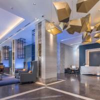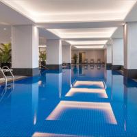 Гости могут отдохнуть и заказать напитки у крытого бассейна с великолепным видом на город.