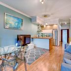 Мини-кухня укомплектована посудомоечной машиной, тостером, холодильником, плитой, кофемашиной и чайником.