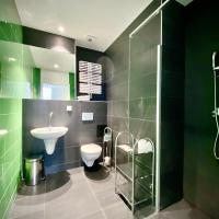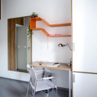 В номерах хостела Polonia есть письменный стол и собственная ванная комната.