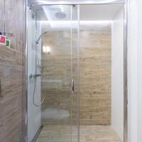 Собственная ванная комната с ванной или душем укомплектована бесплатными туалетно-косметическими принадлежностями.
