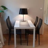 В апартаментах имеются обеденная зона и гостиная с диваном-кроватью.