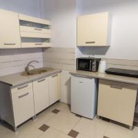 Мини-кухня оснащена микроволновой печью, холодильником и чайником.