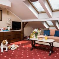Окруженный пышным зеленым садом 5-звездочный отель Crown Piast & Park расположен в пределах 10 минут езды от центра Кракова.