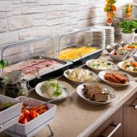 По утрам в обеденном зале отеля сервируется разнообразный завтрак «шведский стол».