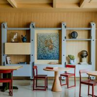 Each comes with modern equipment including a tablet, a 49-inch flat-screen TV and a safety deposit box.