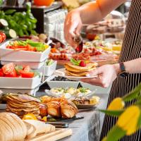Помимо прочего, в отеле подают завтрак «шведский стол» и готовят горячие блюда.