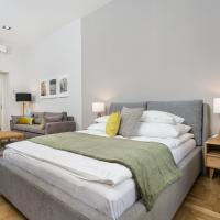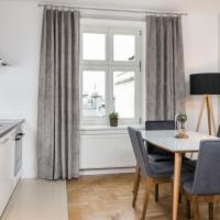 Each apartment features a modern design and offers views of the Old Town’s market or of the courtyard.