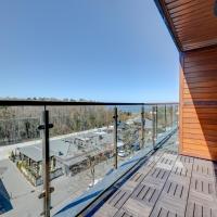 Гости могут отдохнуть на удобном диване и полюбоваться видом на море или лес с большого балкона или террасы.