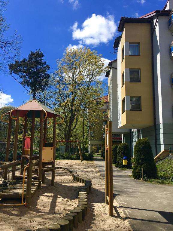 На территории комплекса апартаментов обустроена игровая площадка для детей.