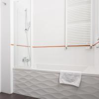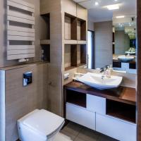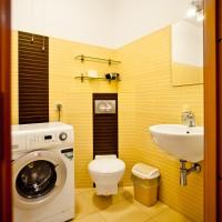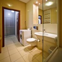 Во всех апартаментах есть стиральная машина и просторная ванная комната с ванной и феном.
