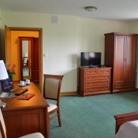 Во всех номерах отеля Łazienkowski есть теплые красные ковры и мебель из цельной древесины.