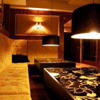 Коктейль-бар отеля TenisHouse с подсветкой в современном стиле предлагает широкий ассортимент напитков.
