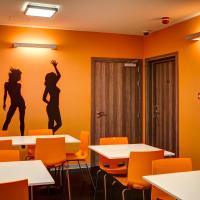 The rooms at Planet Hostel are decorated in a modern style and feature warm colours.