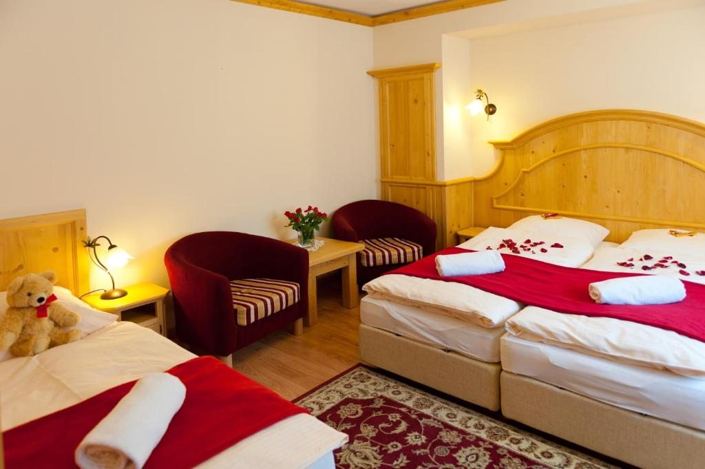 В каждом номере есть собственная ванная комната с душем, а в большинстве — балкон или терраса с видом на лес и горы Бескиды.