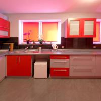 Полностью оборудованная кухня укомплектована микроволновой печью и духовкой.