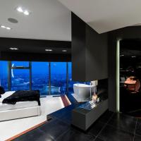 Апартаменты Apartamenty Sky Tower z Wanna Przy Oknie с панорамным видом на город расположены в самом высоком здании Вроцлава в Польше.