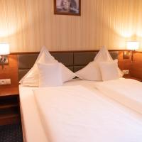 Номера отеля Vega Wrocław оформлены в классическом стиле в теплых тонах и обставлены деревянной мебелью.