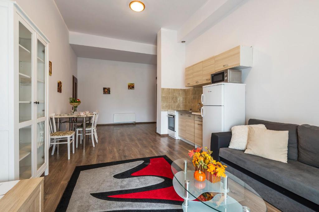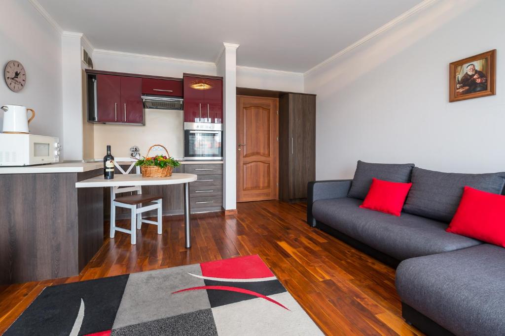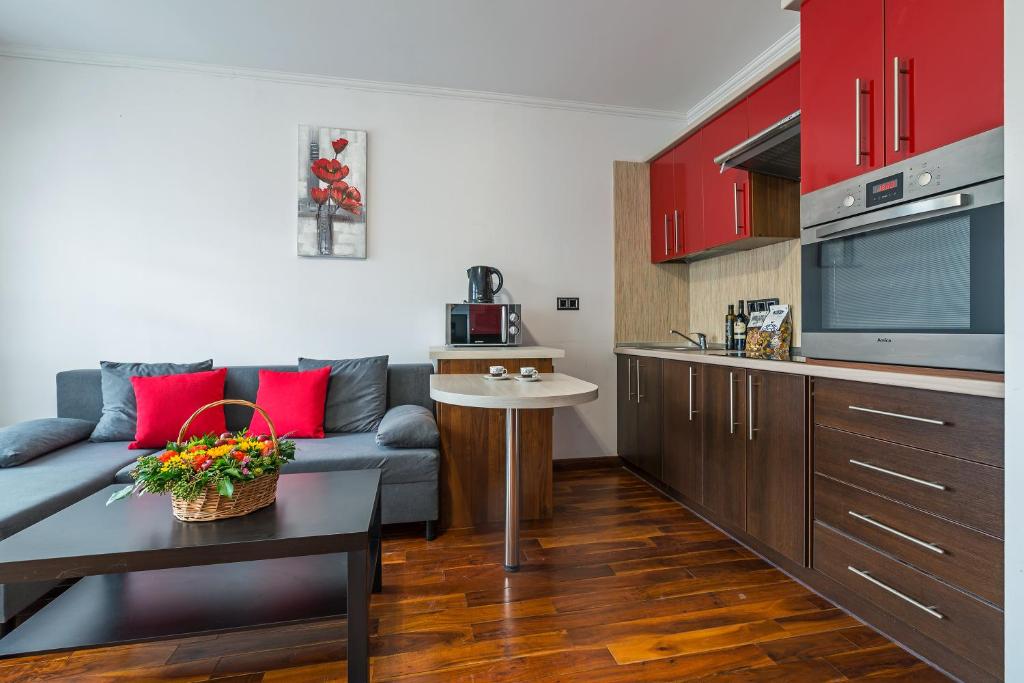 В числе удобств некоторых апартаментов — гостиная зона и/или балкон.