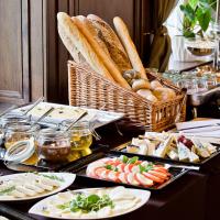 По утрам в ресторане Platinum сервируется разнообразный завтрак, а в течение дня подают блюда кухни фьюжн.