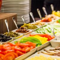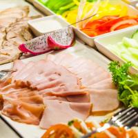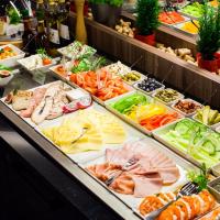 Завтрак состоит из более чем 100 свежих продуктов, в том числе региональных копченых колбас, сыра, салатов и горячих блюд.